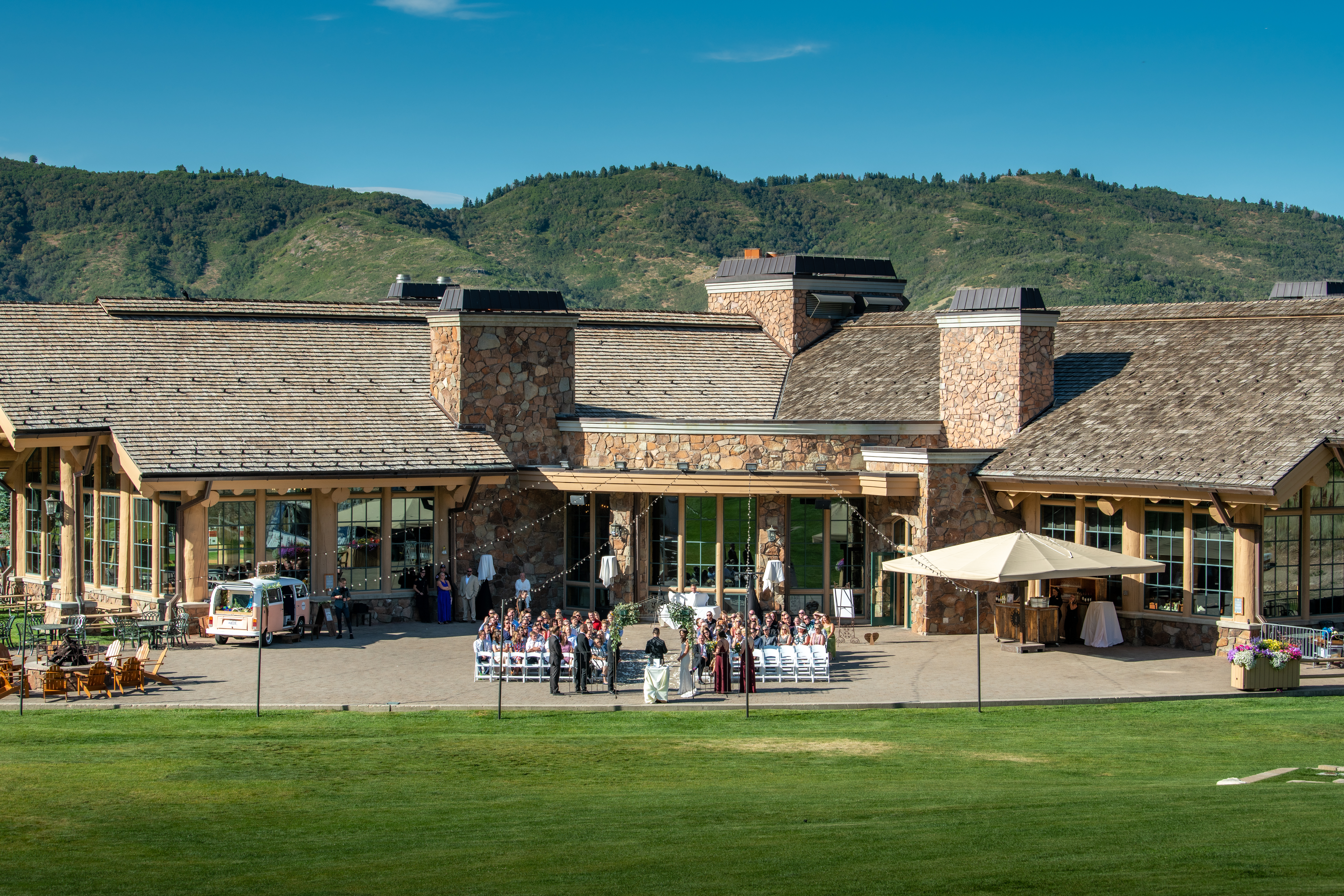 Within the lodge are several rooms available year-round for your private event or wedding. Outside the lodge is a patio with heated pavers, fireplaces and a mountain setting that is picturesque in all four seasons. It is located next to our expansive parking area and offers the easiest access for your guests.